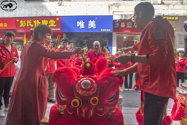 最引人注目的是紅色大獅子,看我們的睿牛總經理親自給它畫龍點睛,舞姿勇猛而雄偉,氣概非凡。它當作勇敢和力量的象征,以祈望生活吉祥如意,事事平安。寓意著新的一年里紅紅火火、生意興隆!