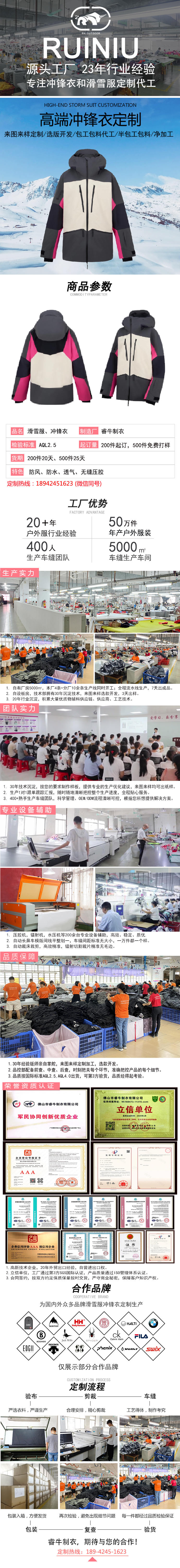 持續20年專注沖鋒衣、滑雪服定制加工廠家